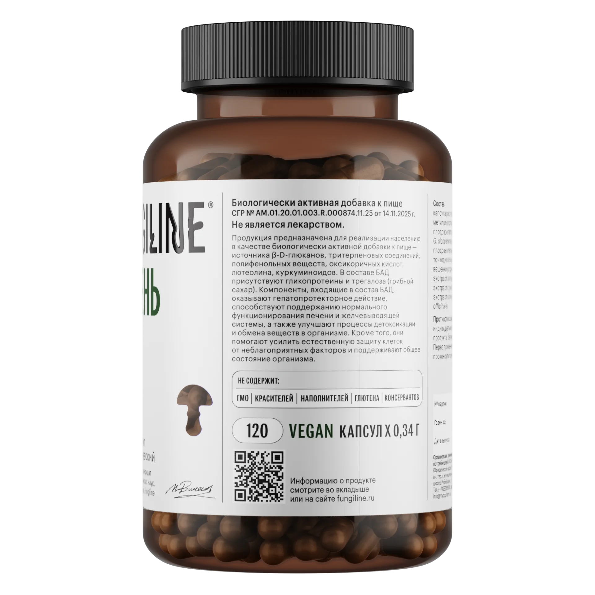 Тонкодисперсный порошок плодовых тел рейши (Ganoderma lingzhi), майтаке (Grifola frondosa), вешенки устричной (Pleurotus ostreatus) низкотемпературной сушки; экстракт куркумы (Curcuma longa), экстракт корня одуванчика (Taraxacum officinale), экстракт артишока (Cynara scolymus).